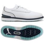 La Puma Golf Ignite Elevate 2 White Deep Navy offre stabilité, confort et adhérence avec son système PWRSaddle, sa mousse IGNITE et ses 100 crampons de traction.