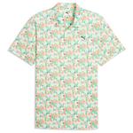 Pour un confort optimal sur le parcours, le polo golf Mattr Deco Warm White Melon Glow de Puma offre une excellente gestion de la transpiration.