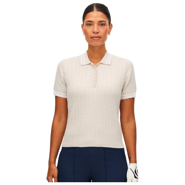 Avec une allure classique, le polo de golf pour femme Röhnisch Classic Cable Oatmeal assure sensation agréable, liberté de swing et tenue élégante sur le green.